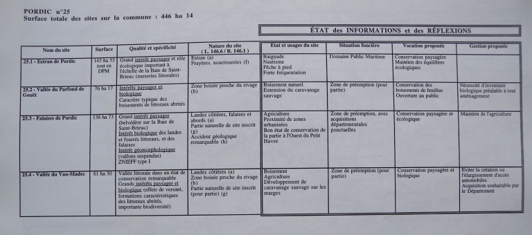 Etat des informations et des réflexions sur les espaces littoraux remarquables de Pordic (DIREN Bretagne, 1998)Immatriculation