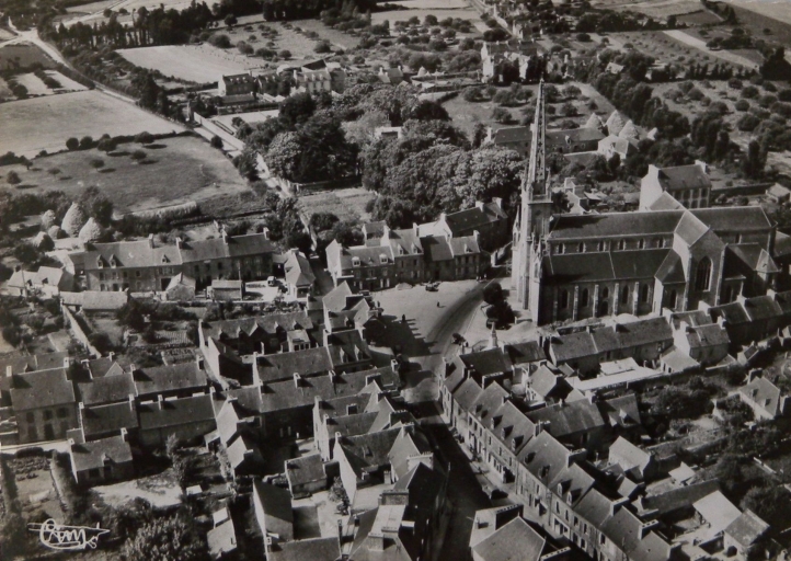 Le bourg de Pordic vers 1960 : remarquer le développemement de l'urbanisme (carte postale, collection particulière)Immatriculation