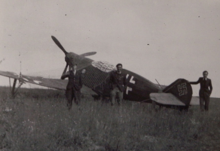 Le 'faux camp d'aviation' avec les avions en bois entre la rue du moulin et Tournemine, pendant la seconde guerre mondiale (collection particulière)Immatriculation