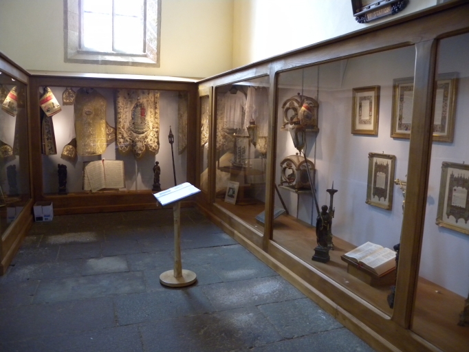 Vue des vitrines d'art sacré, situées à l'entrée Ouest de l'égliseImmatriculation