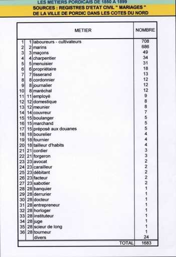 Registre d'état civil des 'mariages' de la commune de Pordic entre 1850 et 1899, 1ère feuille (Jacques Hervé)Immatriculation