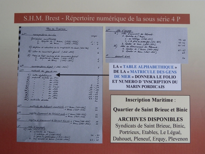 Extrait du répertoire numérique du matricule des gens de mer, pour Pordic, SHM Brest, sous-série 4 P (reproduction, montage, Jacques Hervé)Immatriculation