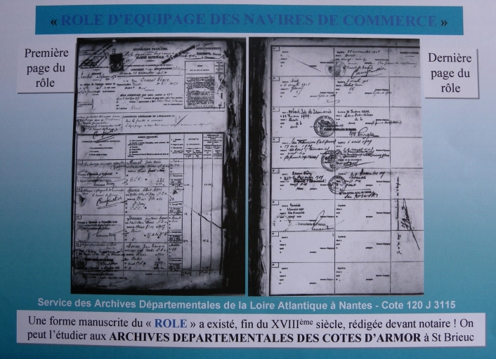 Rôle d'équipage du navire de commerce 'Ernest Reyer', dont le second maître Jean François Eveno, 1909, AD 44, cote 120, J3115 (reproduction, montage, Jacques Hervé)Immatriculation