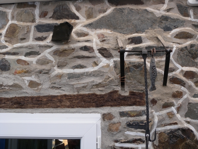Vue de la façade Sud avec les crochets en schiste fiché dans le haut du murImmatriculation