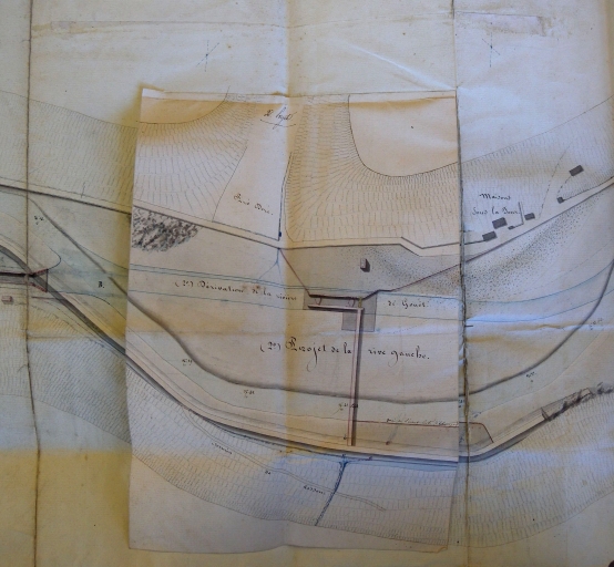 Avant-projet du bassin à flot en 1839 : 2ème projet rive gauche, dérivation de la rivière du Gouët entre le Pré Doré et les maisons sous la Tour (AD 22)Immatriculation