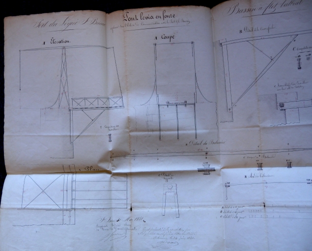 Plan : élévation et coupe du pont levier en fonte à placer entre le port et le bassin (AD 22)Immatriculation
