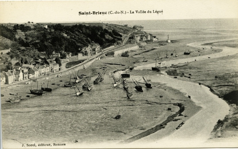 Vue du havre d'échouage de l'avant-port, vers 1910 : remarquer les murs de quais, rice gauche, équipés d'escaliers (AD 22)Immatriculation