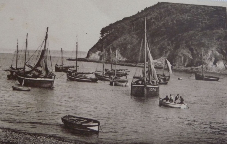 Bateaux de pêche, chalutiers à voiles, gréés en sloop, autour du 'trou de la Rampe', côté Cesson : le 'Grain de sel', le 'Havre' et le 'Jean-Bart', vers 1950 (carte postale, collection particulière)Immatriculation