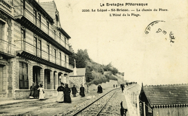 L'Hôtel de la Plage et la voie de chemin de fer qui mène au phare de la Pointe-de- l'Aigle, en 1904 (carte postale, AD 22)Immatriculation