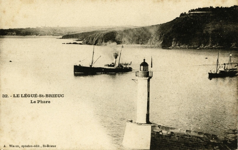 Vue du phare, au passage de deux vapeurs, en 1900 (carte postale, AD 22)Immatriculation
