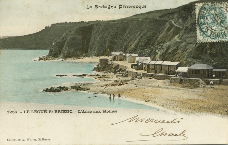 L'anse aux Moines en 1903 : les cabines de bain sur la digue (carte postale, AD 22)Immatriculation