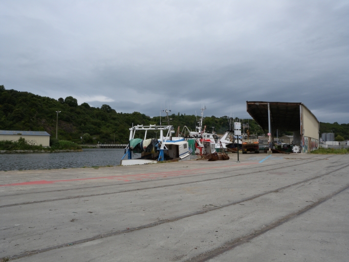 Vue de la plateforme et des quais aménagés pour l'avitaillement des bateaux de pêche, rive droite du portImmatriculation