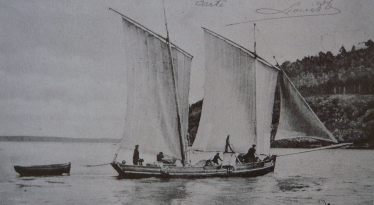 Bateau de travail du Légué, gréé en chaloupe et armés au sable (avec la drague à poche), 1er quart 20ème siècle (carte postale, collection particulière)Immatriculation