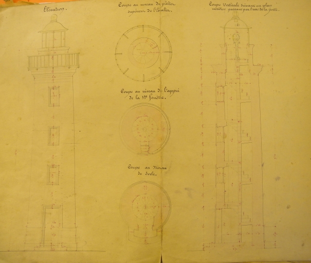 Premier plan du fanal du Légué, 1851 : coupe et élévation (AD 22)Immatriculation