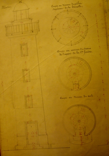 Plan du fanal du Légué, 1851 : détail, coupe et élévation (AD 22)Immatriculation