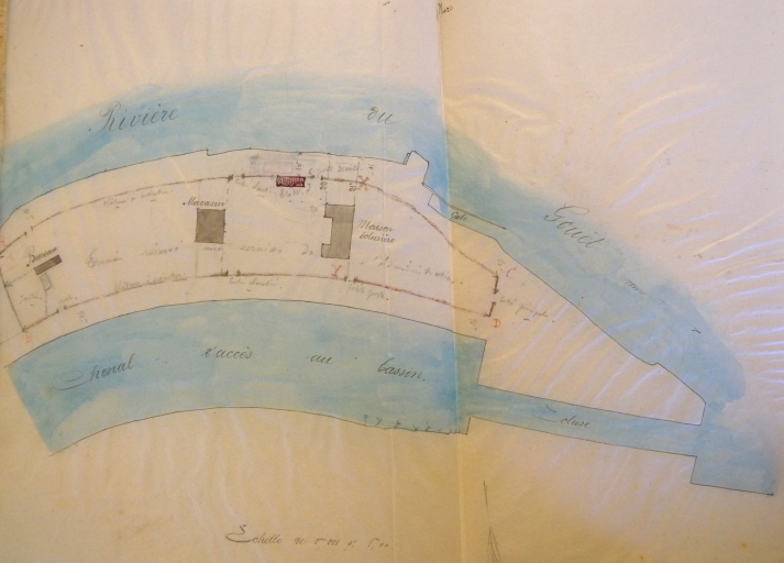 Plan : emplacement de la maison éclusière, du bureau et du magasin, 1892 (Ad 22)Immatriculation