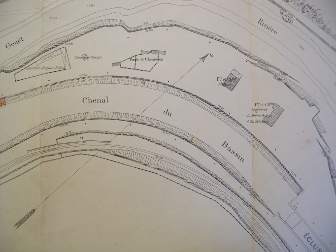 Plan de 'l'Île Sèche' devant le chenal du bassin, avec les bâtiments des Ponts-et-Chaussées, 1892 (AD 22)Immatriculation
