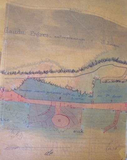 Plan de la grève de l'anse aux Moines en 1891 : remarquer le dessin de la tour de guet (AD 22)Immatriculation