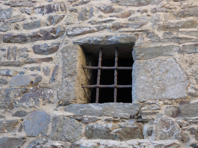 Vue de détail d'une ouverture avec grille en fer forgé, datée du 15ème, rue des Frères DurandImmatriculation