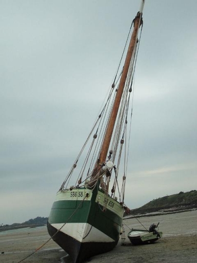 Vue du 'Grand Léjon', échoué sur le 'Grand Banc' dans une position confortable en raison de sa quille longue et de son bordé d'échouage (collection particulière, Association le Grand Léjon)Immatriculation