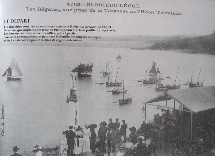 Le départ des régates au Légué, depuis l'Hôtel Terminus, à la Pointe à l'Aigle (carte postale, collection particulière)Immatriculation