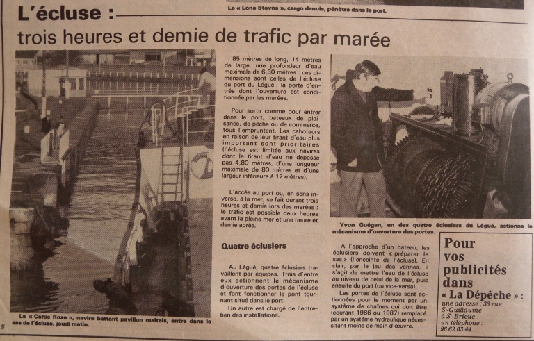 Extrait du journal 'La Dépèche', 30 avril 1980 : 'regards sur le port du Légué (collection particulière)Immatriculation
