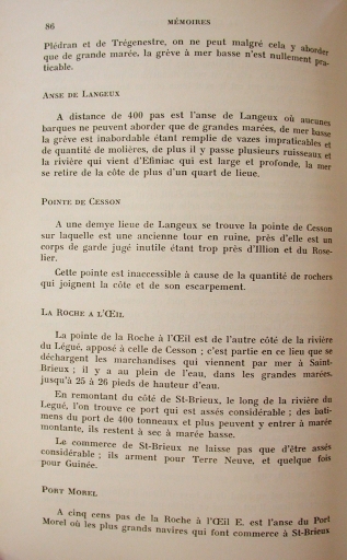 Extrait du rapport de Mazin, 1756, p. 86 : reconnaissance de la côte et des mouillages au port du Légué (collection particulière)Immatriculation