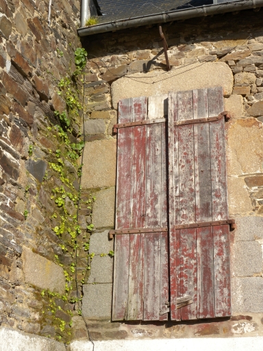 Vue de détail d'une fenêtre avec l'encadrement en pierre de taile (granite)Immatriculation