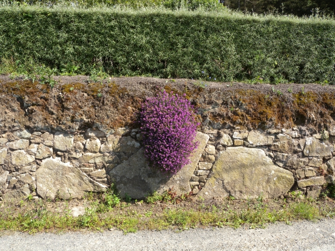 Vue des murets de clôture en pierres sèches près du sentier littoralImmatriculation
