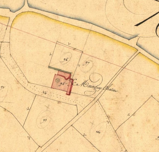 Extrait du cadastre de 1827 : château de Kermenguy avec le puits indiqué (AD 22)Immatriculation