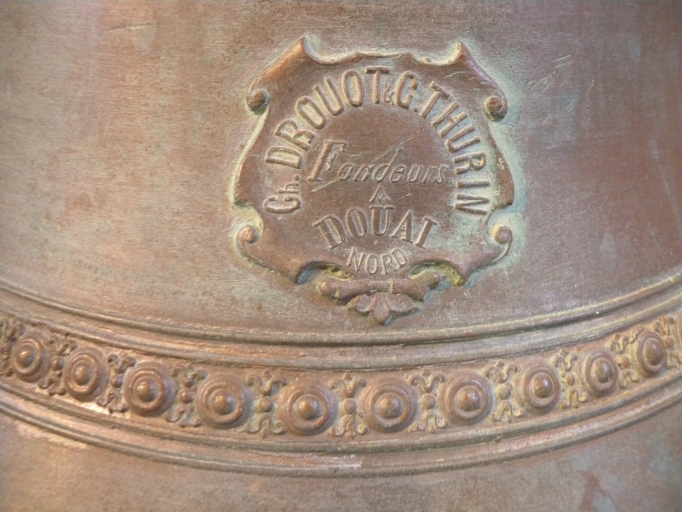 Vue de détail du noms des fondeurs : Charles Drouot et G. Thurin, à Douai (Nord)Immatriculation