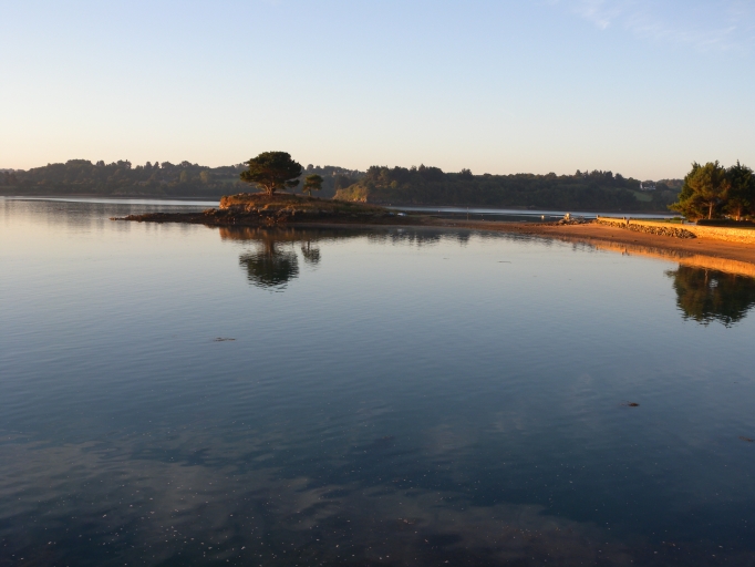 Vue de l'île dans sa partie Nord-Est : remarquer le cordon dunaire qui la relie à la terre, à mi maréeImmatriculation