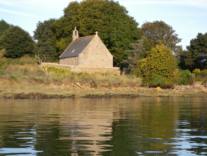 Vue de la chapelle littorale à marée haute, accessible en bateauImmatriculation