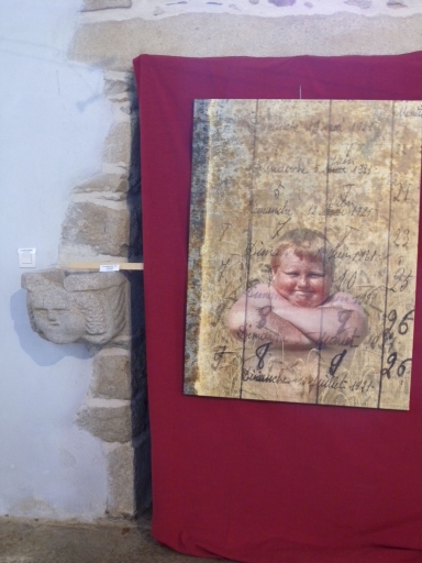 Vue d'une photo exposée par un artiste en correspondance figurative avec la sculpture du bénitierImmatriculation