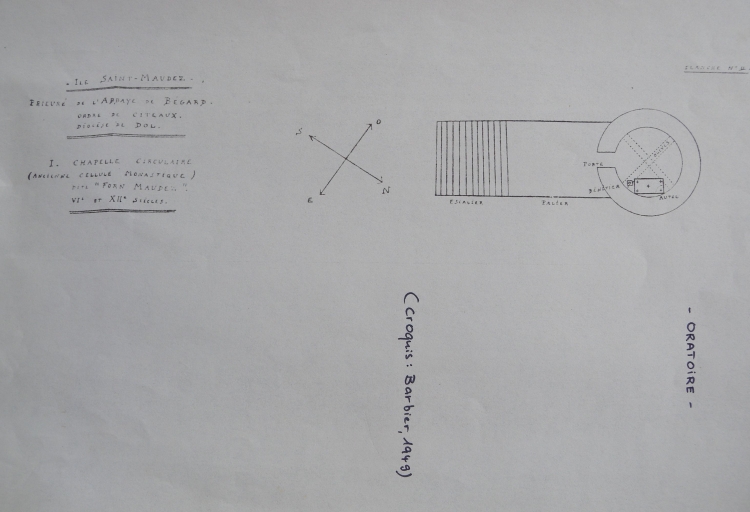 Dessin : plan de la cellule de saint Maudez par Pierre Barbier, 1949Immatriculation