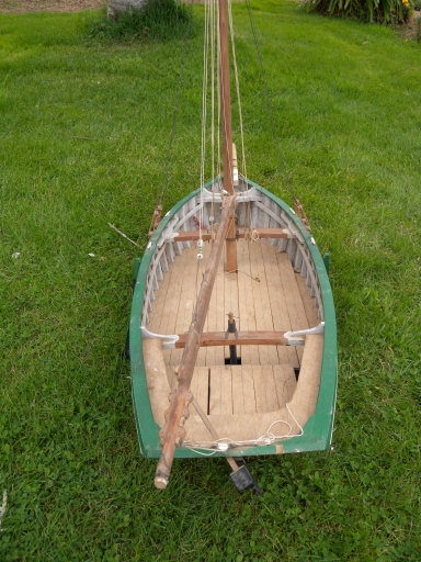 Vue de détail du pont : remarquer le banc de pompe et le banc avant qui maintient le mât de misaineImmatriculation