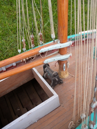 Vue de détail de la cale située en arrière du mât de charge et du treuilImmatriculation
