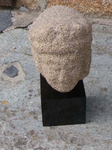 Vue d'une tête de moine, sculptée en granite, conservée actuellement dans l'ancienne métairieImmatriculation