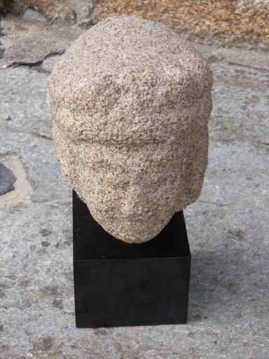 Vue d'une tête sculptée dans le granite, découvrerte dans l'îleImmatriculation