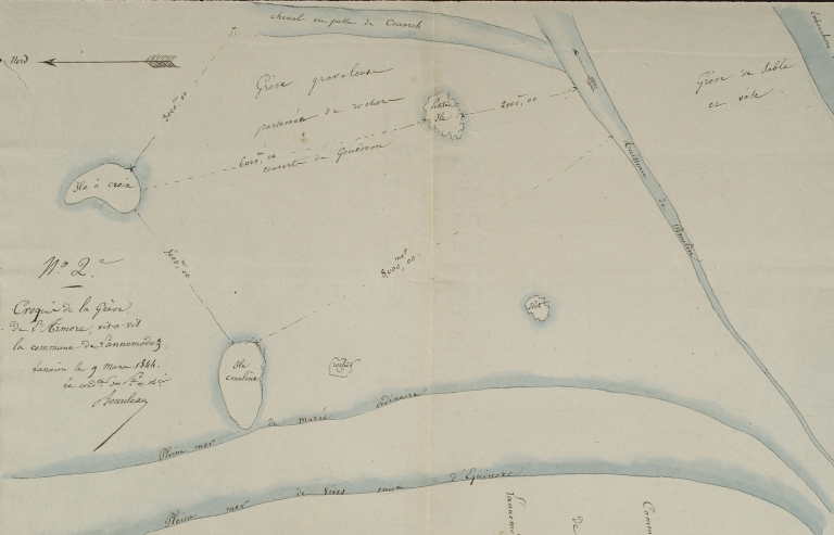 Plan aquarellé d'une demande de concession sur le Domaine Public Maritime de Lanmodez en 1844 (AD 22)Immatriculation