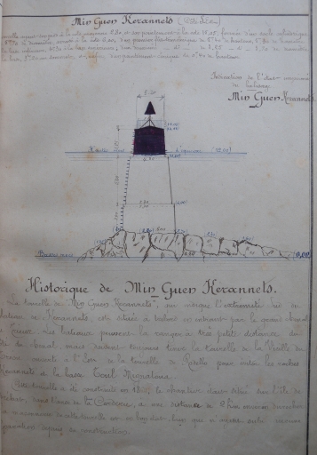 Dessin de la balise, tourelle maçonnée de Min Guen Kerannets, grand chenal du Trieux,1864 (DDE 22, Phares et Balises)Immatriculation