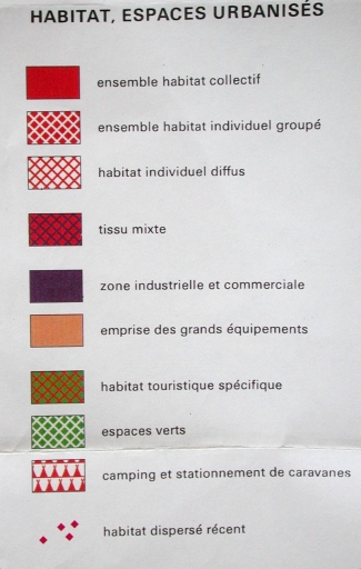 Légende de la carte IPLI (Inventaire Permanent du littoral, 1977) : habitat et espaces urbanisés (IGN, 1982)Immatriculation