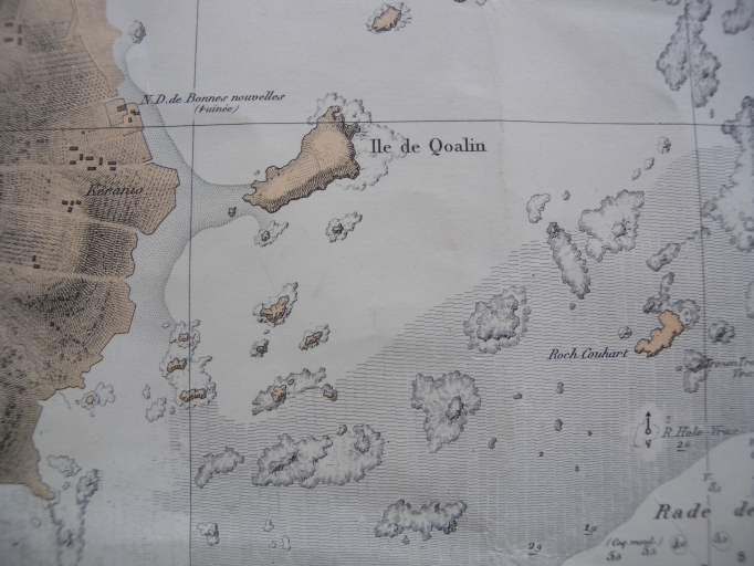 Extrait carte du SHOM : Île Coalen relevé par Beautemps-Beaupré en 1837 (collection particulière)Immatriculation