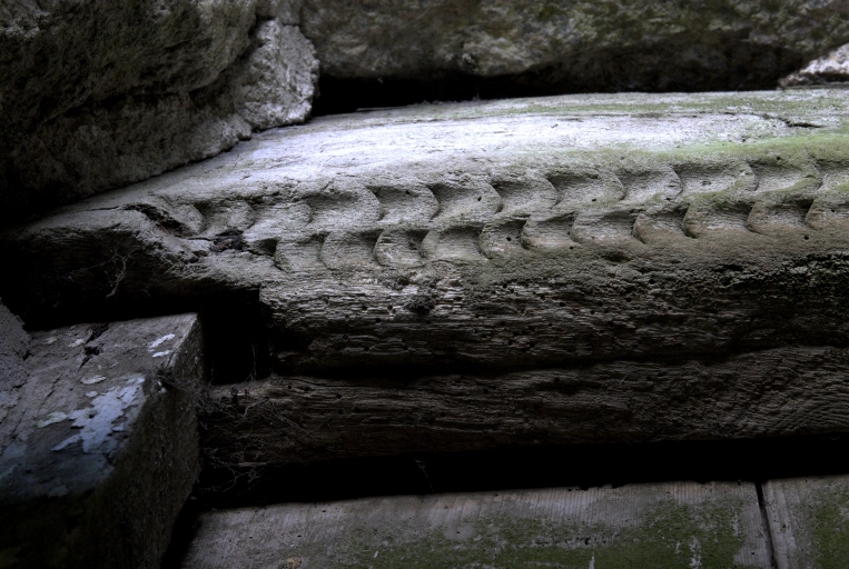 Entrée nord. Détail du linteau sculptéImmatriculation