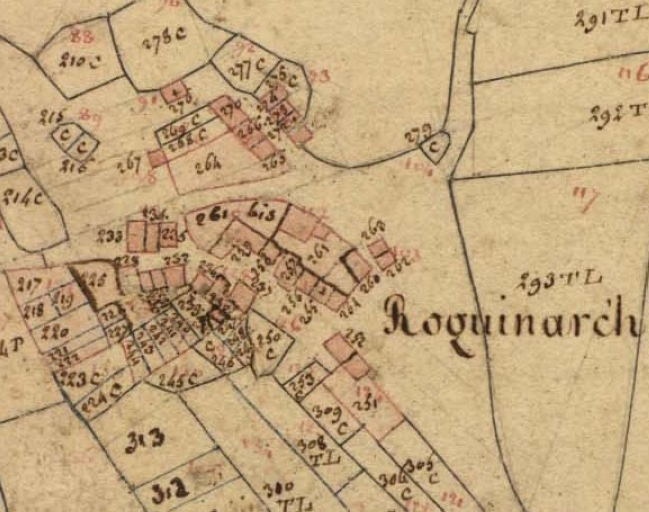 Le village en 1813. Extrait du cadastre de Brasparts, section B 2 (A. D. Finistère, 3 P 319)Immatriculation