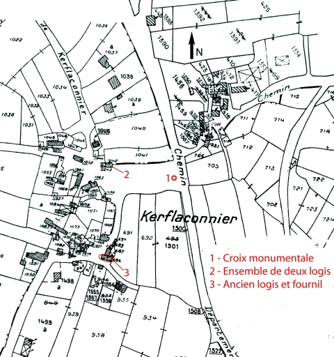 Localisation des éléments bâtis repérés (fond : cadastre de 1994)Immatriculation