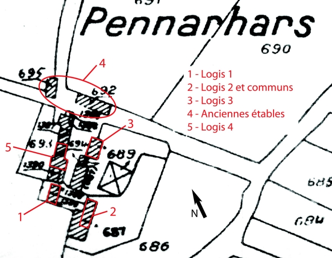 Localisation des éléments bâtis repérés (fond : cadastre de 1994)Immatriculation