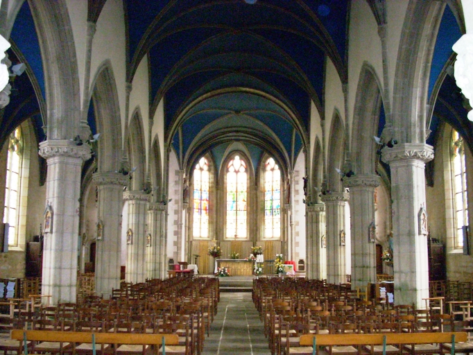 Plonévez-Porzay, église paroissiale Saint-Miliau : vue axiale estImmatriculation