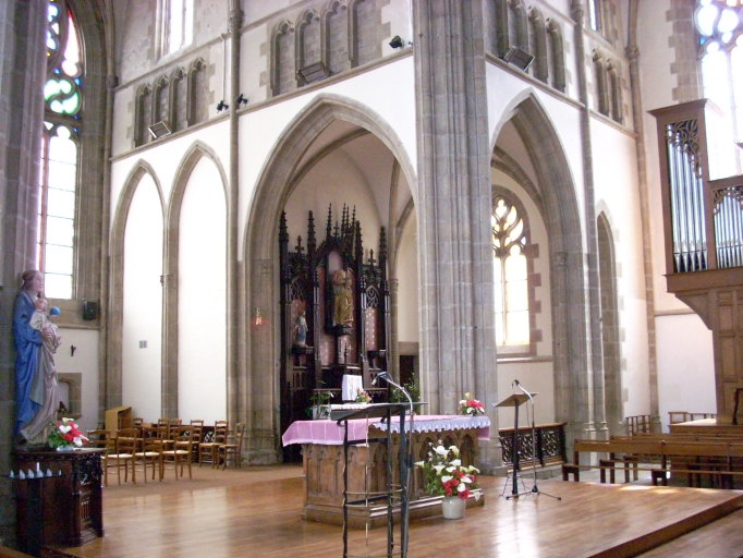 Carhaix, église paroissiale Saint-Trémeur : vue transversale du choeur depuis le bras nord du transeptImmatriculation