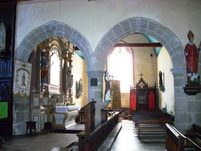 Lampaul-Ploudalmézeau, église paroissiale : vue de la chapelle latérale sud depuis la nefImmatriculation